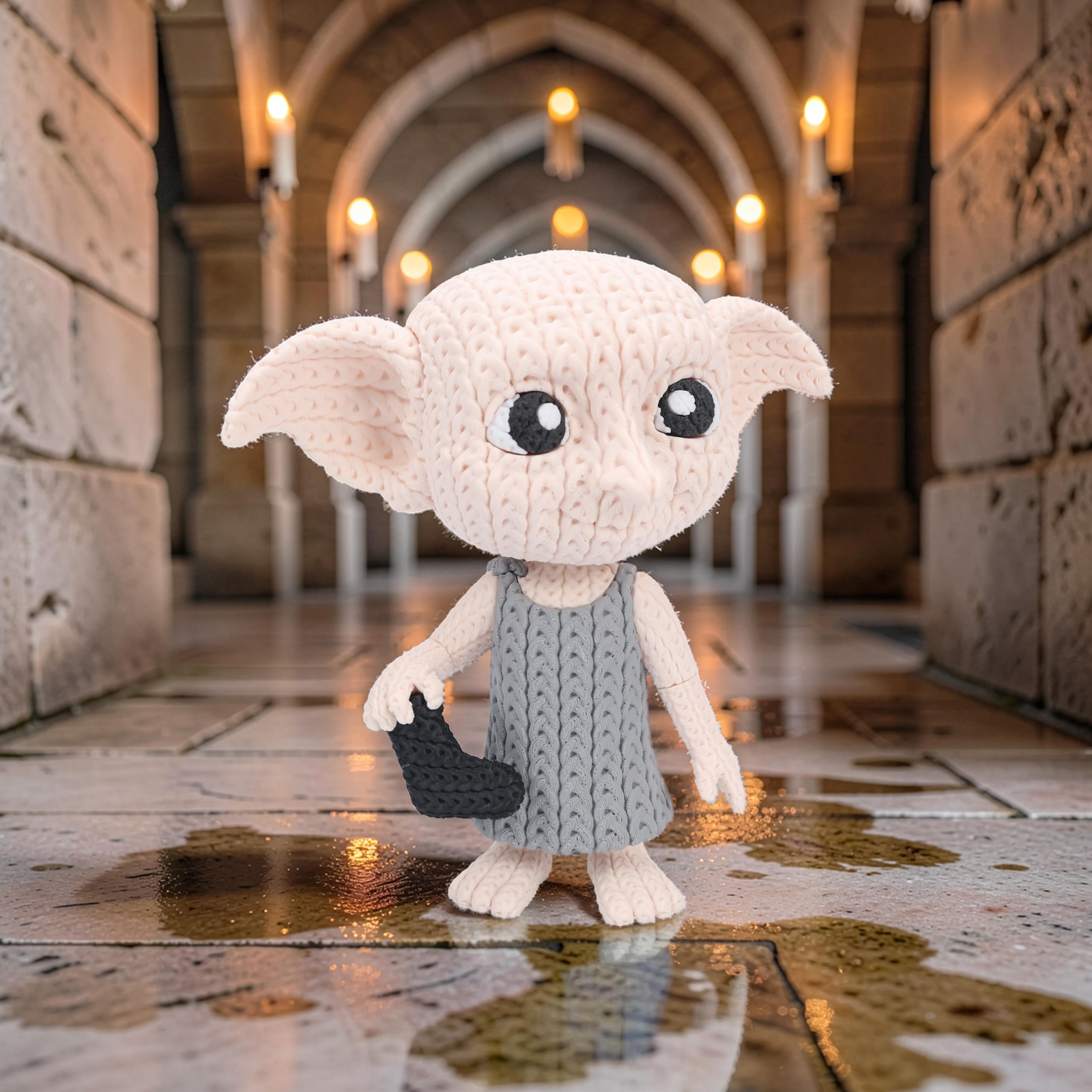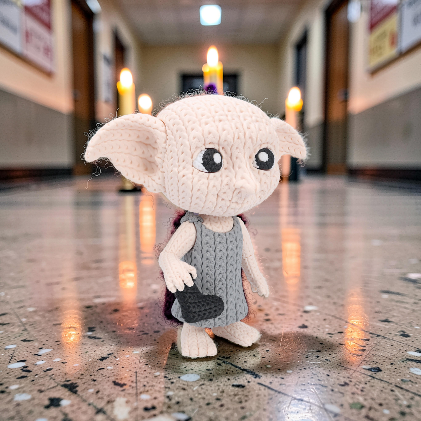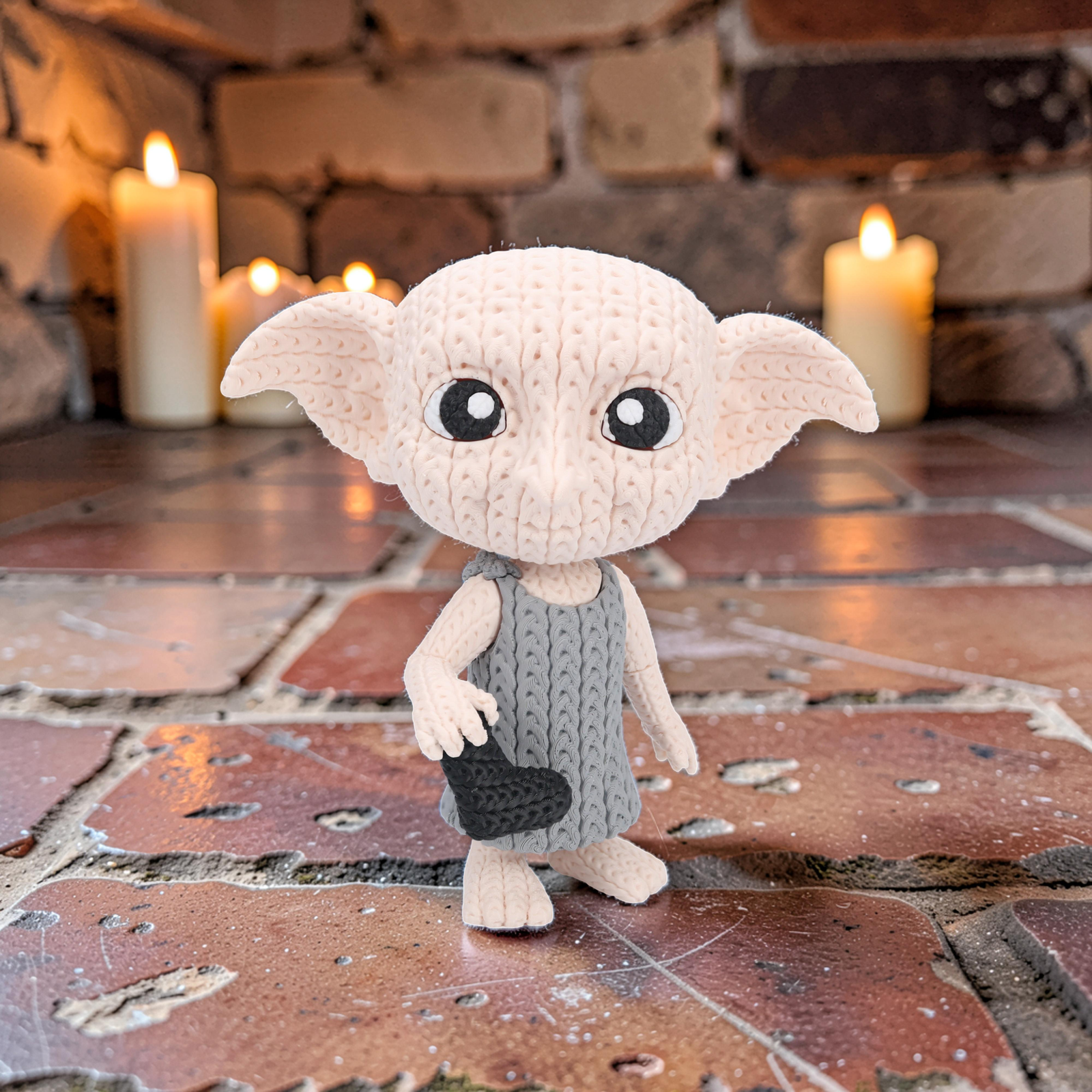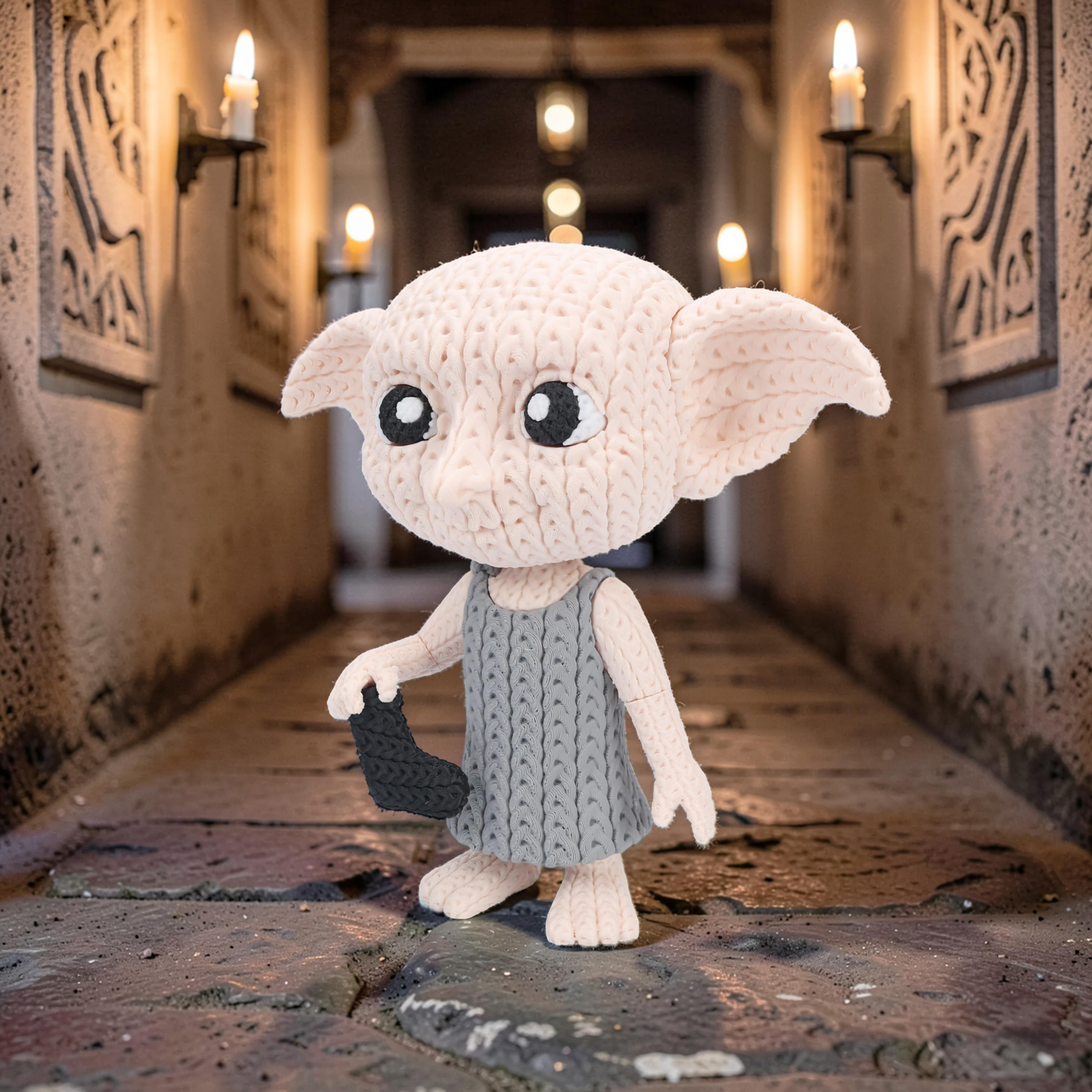 Add a touch of magic to your collection with this 8-inch 3D printed Dobby figure featuring a charming knitted/crochet-style texture. With a swivel head for adjustable posing, it’s a fun and heartwarming display piece for any fan.