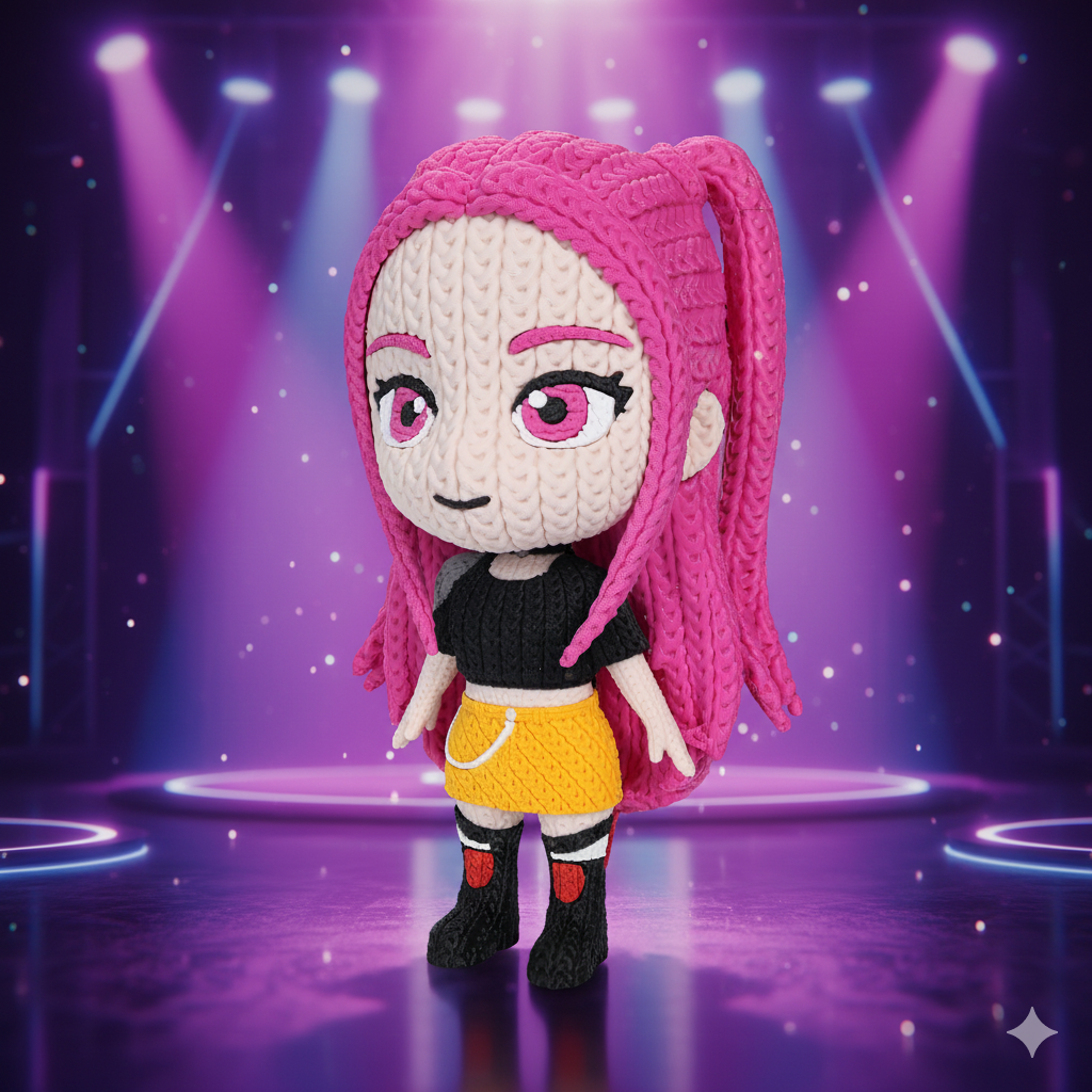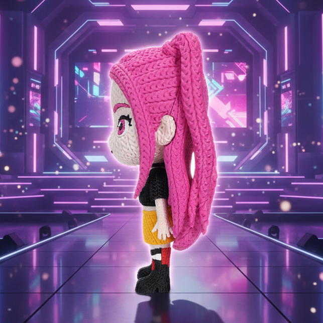 Bring bold style and attitude to your collection with this 3D printed Mira figure inspired by KPop Demon Hunters. Designed with a distinctive knitted/crochet-style texture, this figure captures the look of a handcrafted toy while delivering the detail and durability of modern 3D printing.